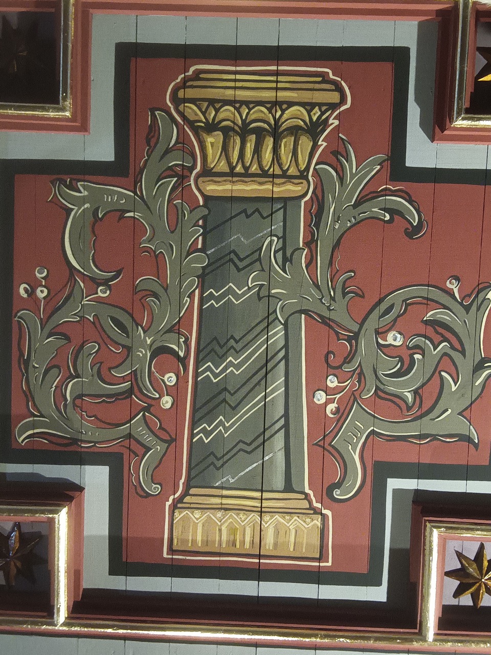 Obrazem, który jak w soczewce skupia na sobie poprzednie dwie alegorie maryjne: Judyt wojującą, która stała się chwałą Jerozolimy oraz piękną królową Esterę, jest umieszczony pomiędzy nimi obraz przedstawiający kolumnę, jako symbol mocy. Pierwotnie towarzyszyły mu słowa: STARKES WEIB co dosłownie tłumaczy się jako „Silna kobieta”. Jest to nawiązanie do wezwanie z Litanii loretańskiej: „Panno można” lub do Godzinek, w których śpiewamy o Maryi jako „Mężnej białogłowie”. Słowo można, mężna oznacza silna.